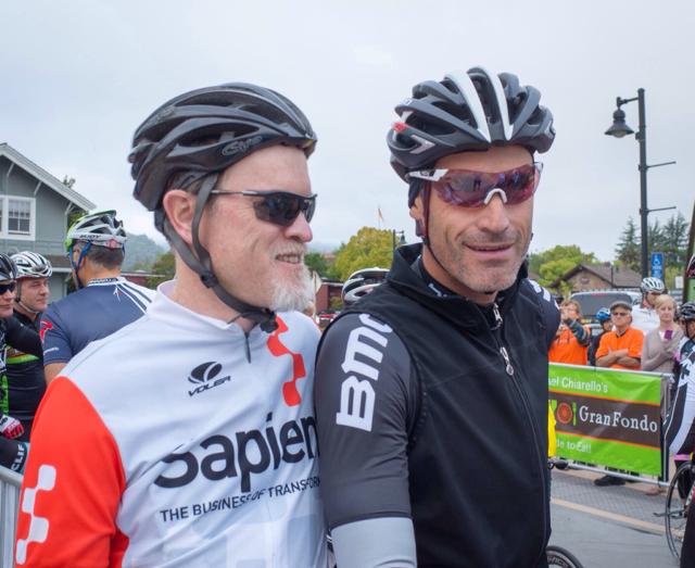 What a day of riding, eating and drinking. We started at 8am from Yountville. Maureen and I were on Dave Zabriskie's team (10 people per team) and so we had some time to hang out with him before the ride. I was able to get some pictures with George Hincapie and Bob Roll also before we rolled out of Yountville.